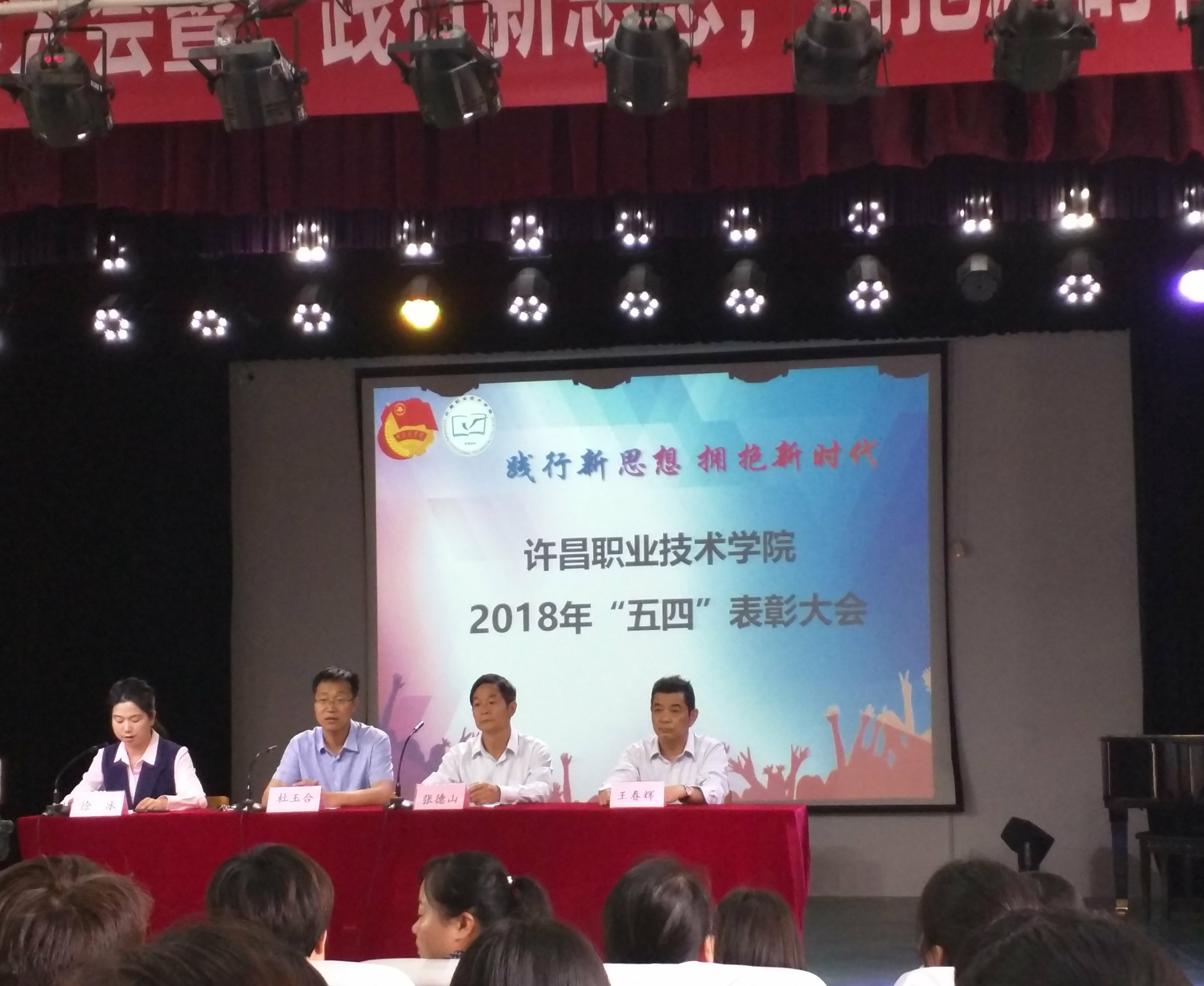 5月4日(周五)下午2:30分,在一号实训楼“小礼堂”召开了许昌职业技术学院2018年度五四表彰大会暨“践行新思想,拥抱新时代”的主题演讲比赛,参会人员为各学院主管学生工作领导、团总支书记、全体辅导员、优秀专职团干、十佳青年、青年文明号获得者及演讲比赛参赛者。
